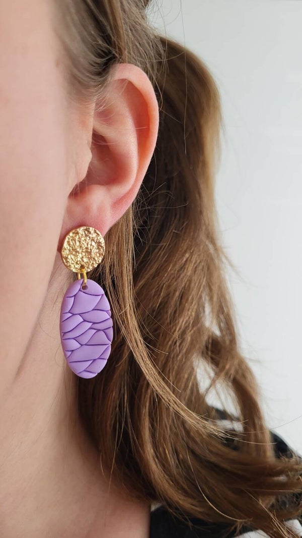 Een prachtige statementoorbel van lichtgewicht polymeerklei (en RVS). De oorbellen zijn handgemaakt in Zeeland.