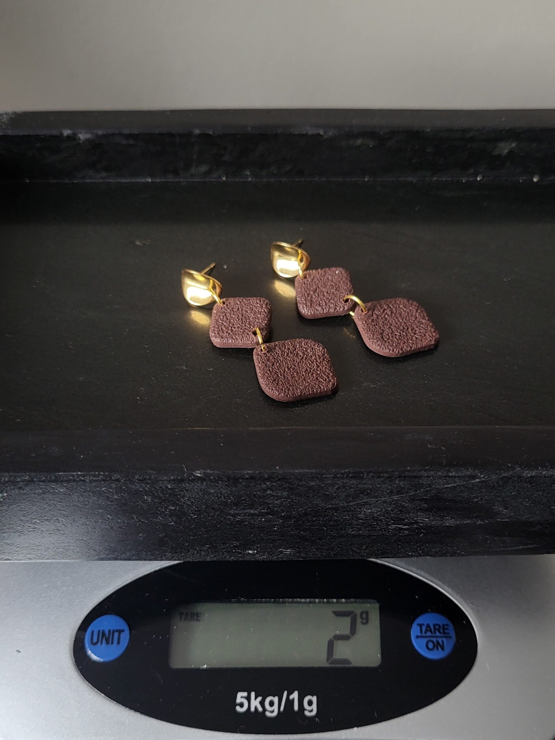 Een prachtige statementoorbel van lichtgewicht polymeerklei. De oorsteker is van RVS met een 24K goudlaagje. De oorbellen zijn handgemaakt in Zeeland.