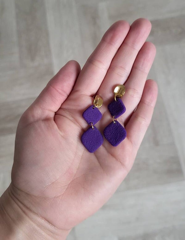 Een prachtige statementoorbel van lichtgewicht polymeerklei. De oorsteker is van RVS met een 24K goudlaagje. De oorbellen zijn handgemaakt in Zeeland.