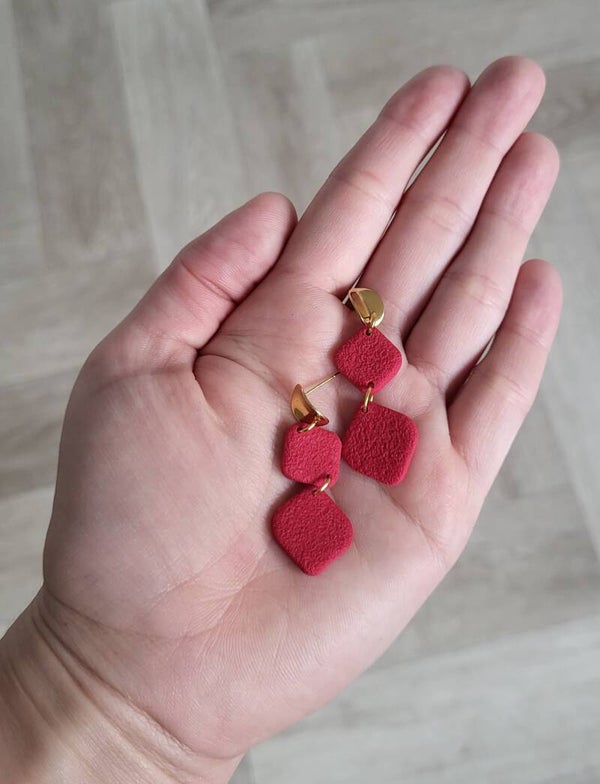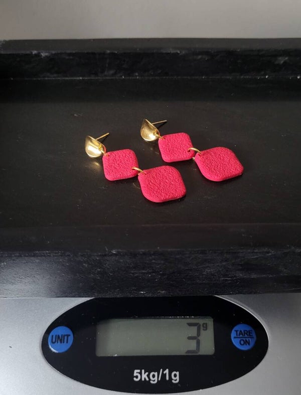 Een prachtige statementoorbel van lichtgewicht polymeerklei. De oorsteker is van RVS met een 24K goudlaagje. De oorbellen zijn handgemaakt in Zeeland.