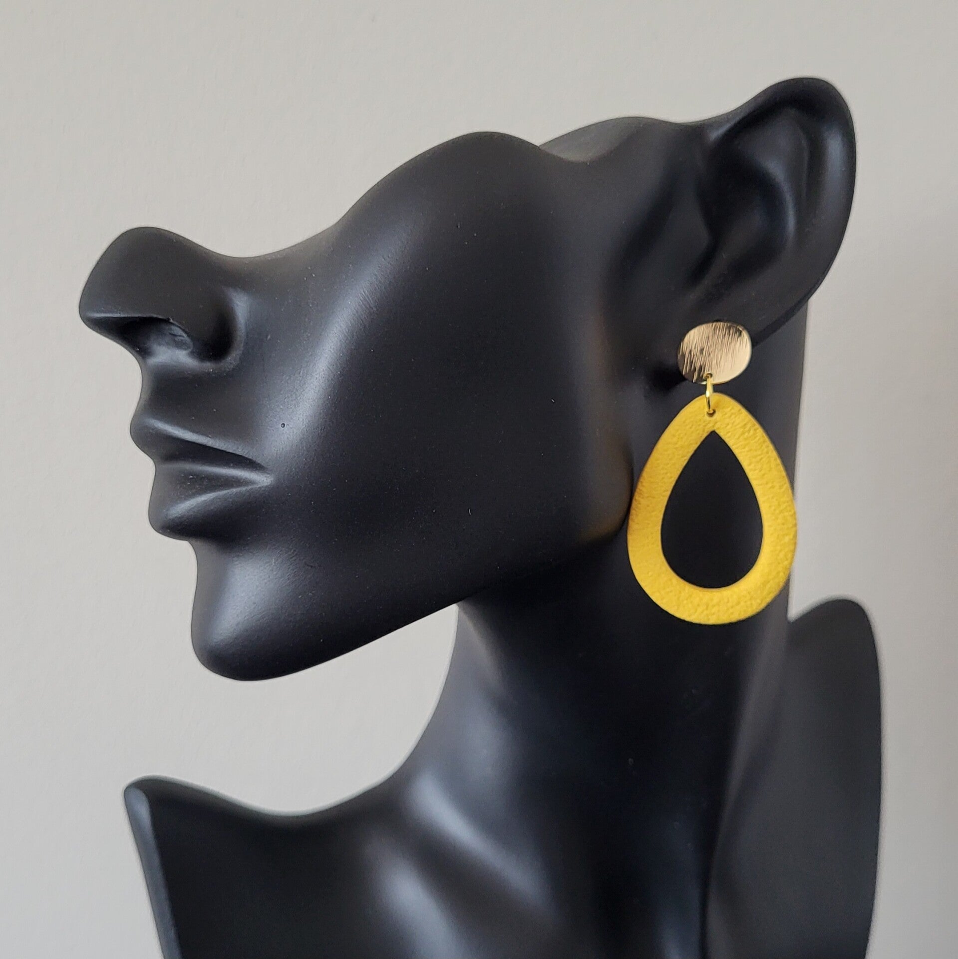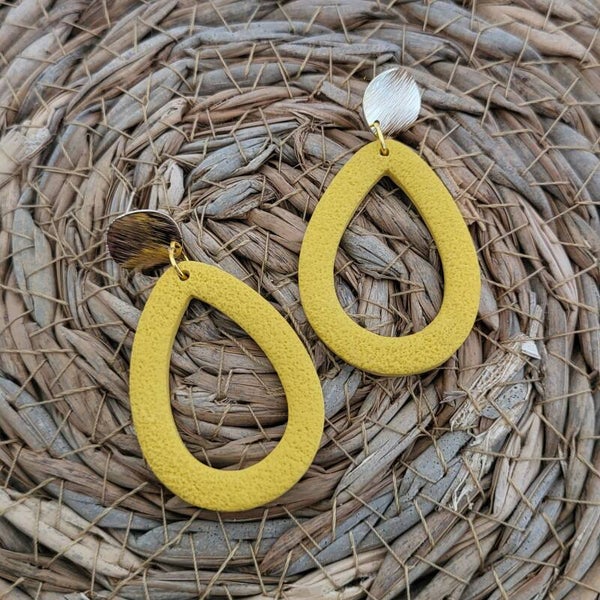 Een prachtige statementoorbel van lichtgewicht polymeerklei. De oorsteker is van stainless steel (RVS) met een 24K goudlaagje. De oorbellen zijn handgemaakt in Zeeland.