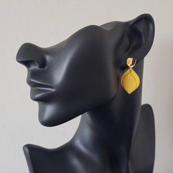 Een prachtige mini oorbelhanger van lichtgewicht polymeerklei. De oorsteker is van stainless steel (RVS) met een coating van 24K goud. De oorbellen zijn handgemaakt in Zeeland.