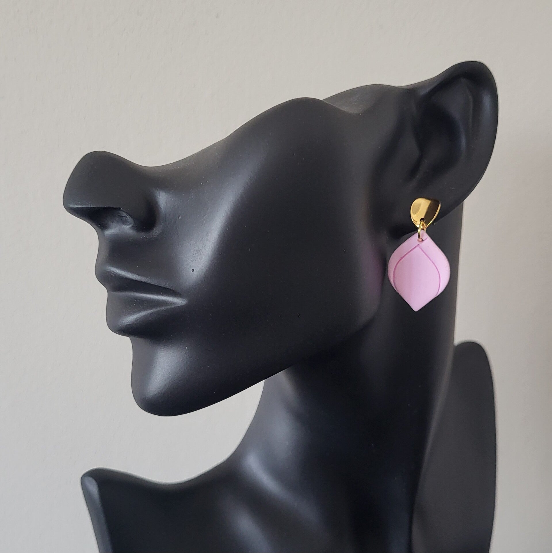 Een prachtige mini oorbelhanger van lichtgewicht polymeerklei. De oorsteker is van stainless steel (RVS) met een coating van 24K goud. De oorbellen zijn handgemaakt in Zeeland.