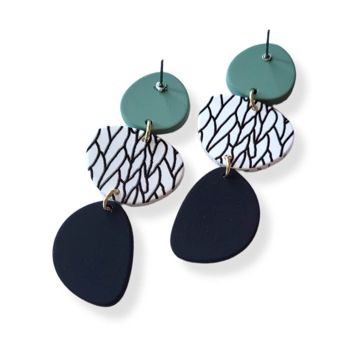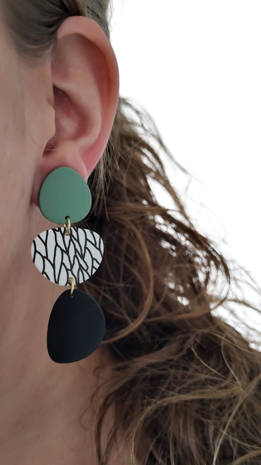Modern, geometrische oorbel NoaDè favoriet van de collectie!Lichtgewicht Materiaal: Polymeer kleiAfmetingen: 6,4 cm lang en 2,4 cm breedACTIE: Bij elke bestelling ontvangt u een gratis gift.