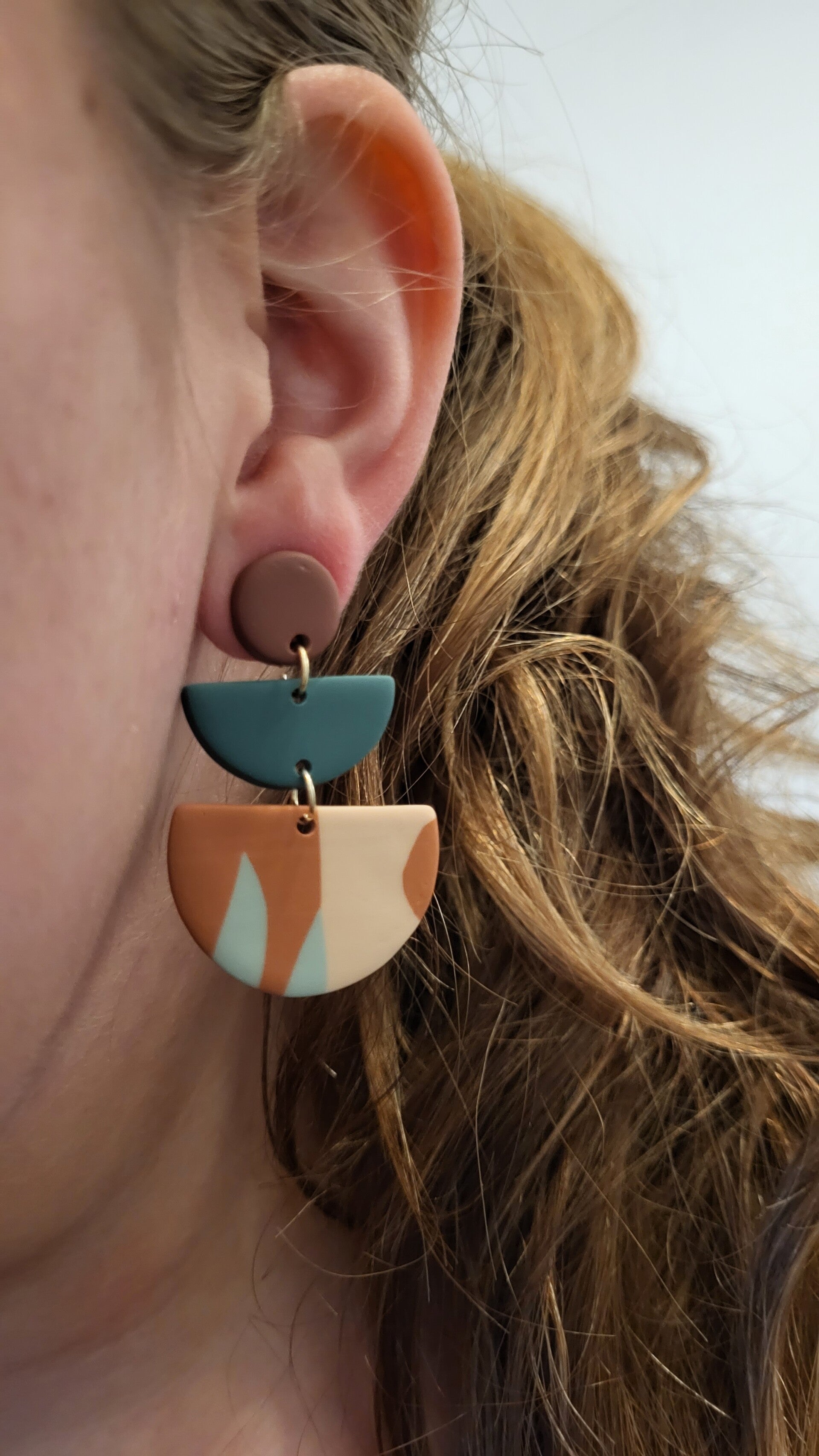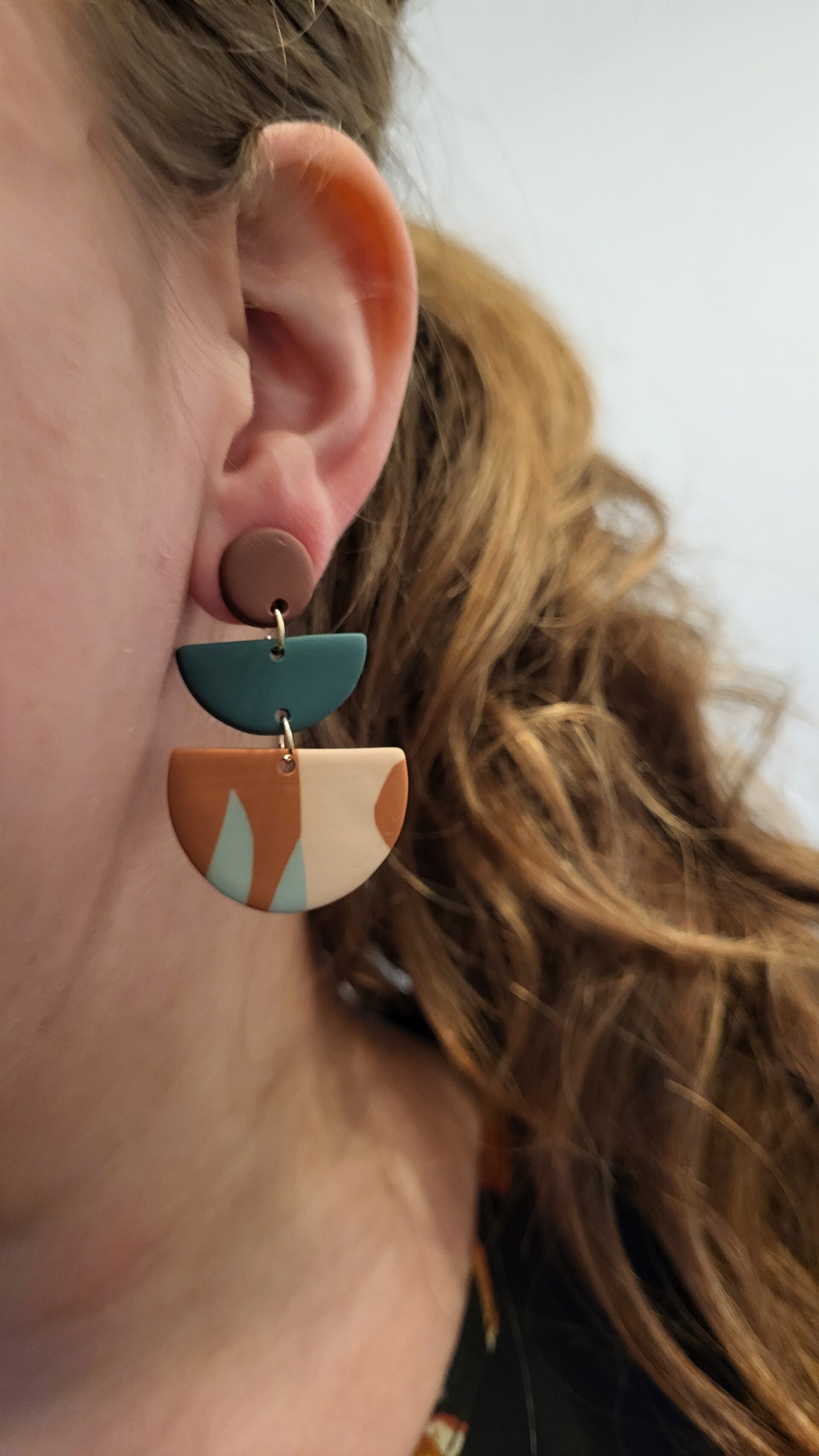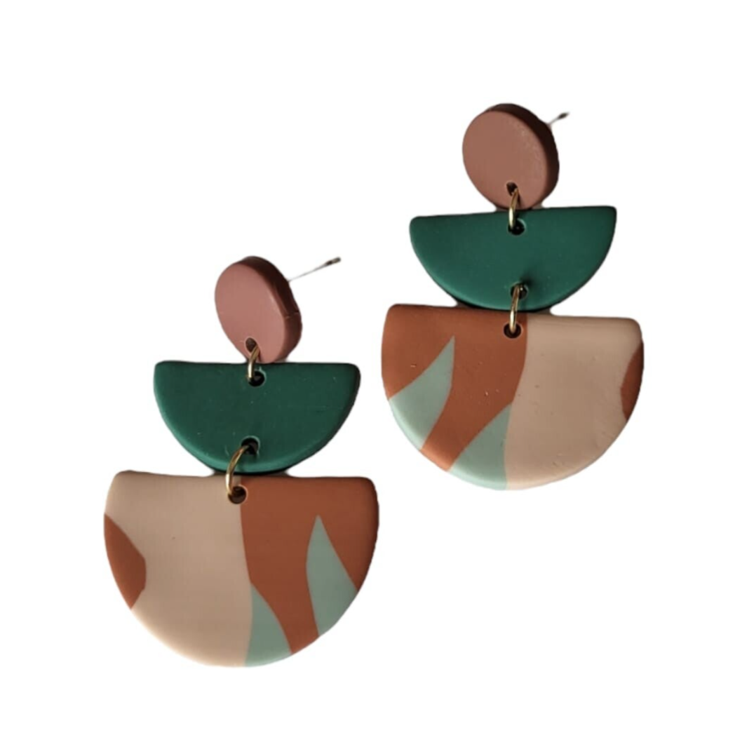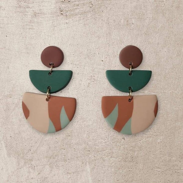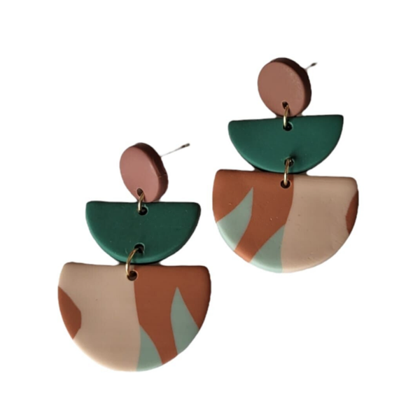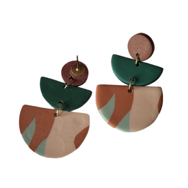 Modern, geometrische oorbel EvyLichtgewicht Materiaal: Polymeer kleiAfmetingen: 4,6 cm lang en 3 cm breedACTIE: Bij elke bestelling ontvangt u een gratis gift.